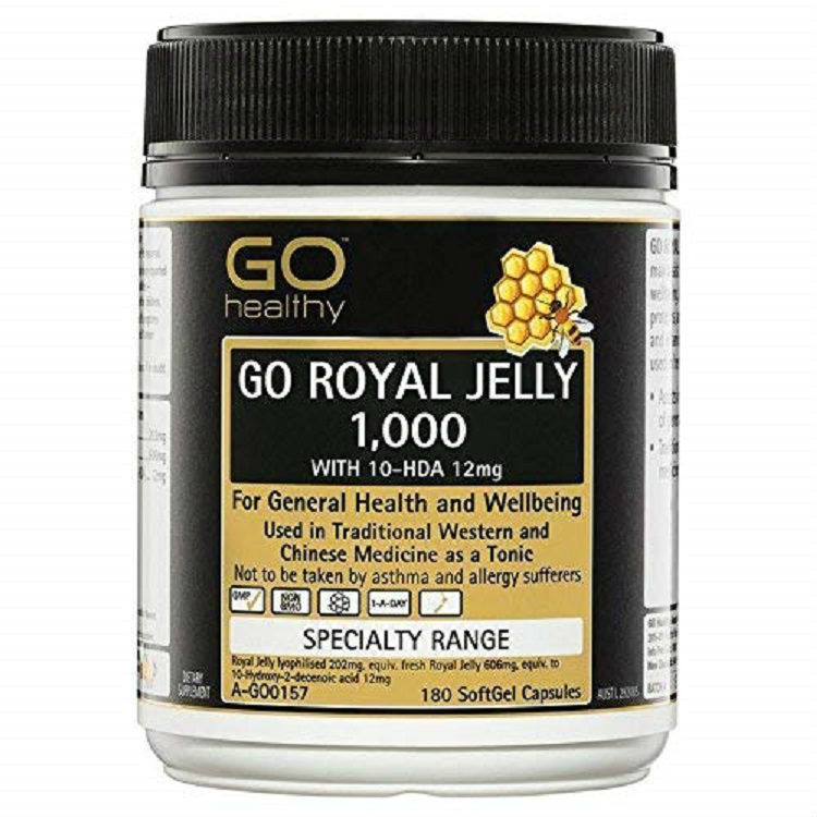 Go Healthy Go Royal Jelly 1,000 with 10-HDA 12mg SoftGel Capsules for general health and well being are used in traditional western and Chinese medicine as a tonic.