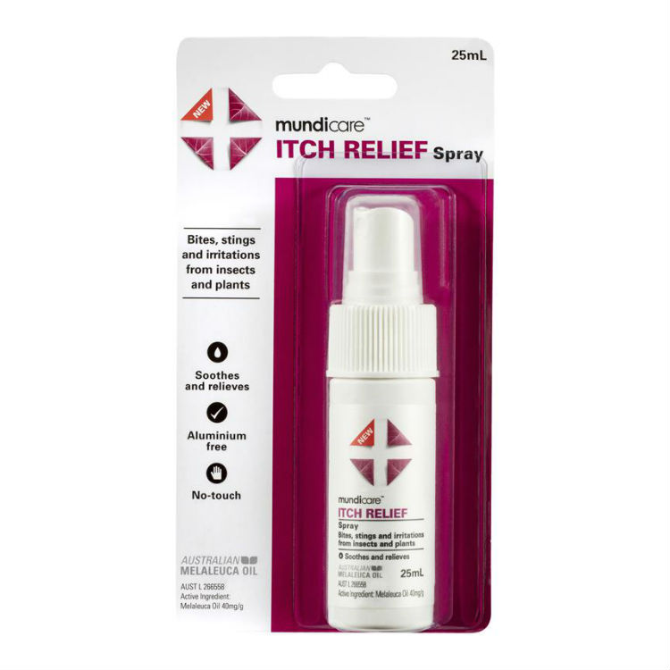 Mundicare itch relief spray contains single origin Australian melaleuca oil distilled to strict standards. Melaleuca oil has been traditionally used for soothing relief from itchy bites, stings and irritations from insects and plants.